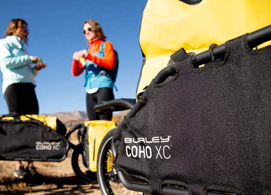 The Burley Coho XC trailer is built for adventure. It is a lightweight and nimble single-wheel bike trailer that has become the go-to gear-hauling trailer for bikepacking, touring and singletrack riding.